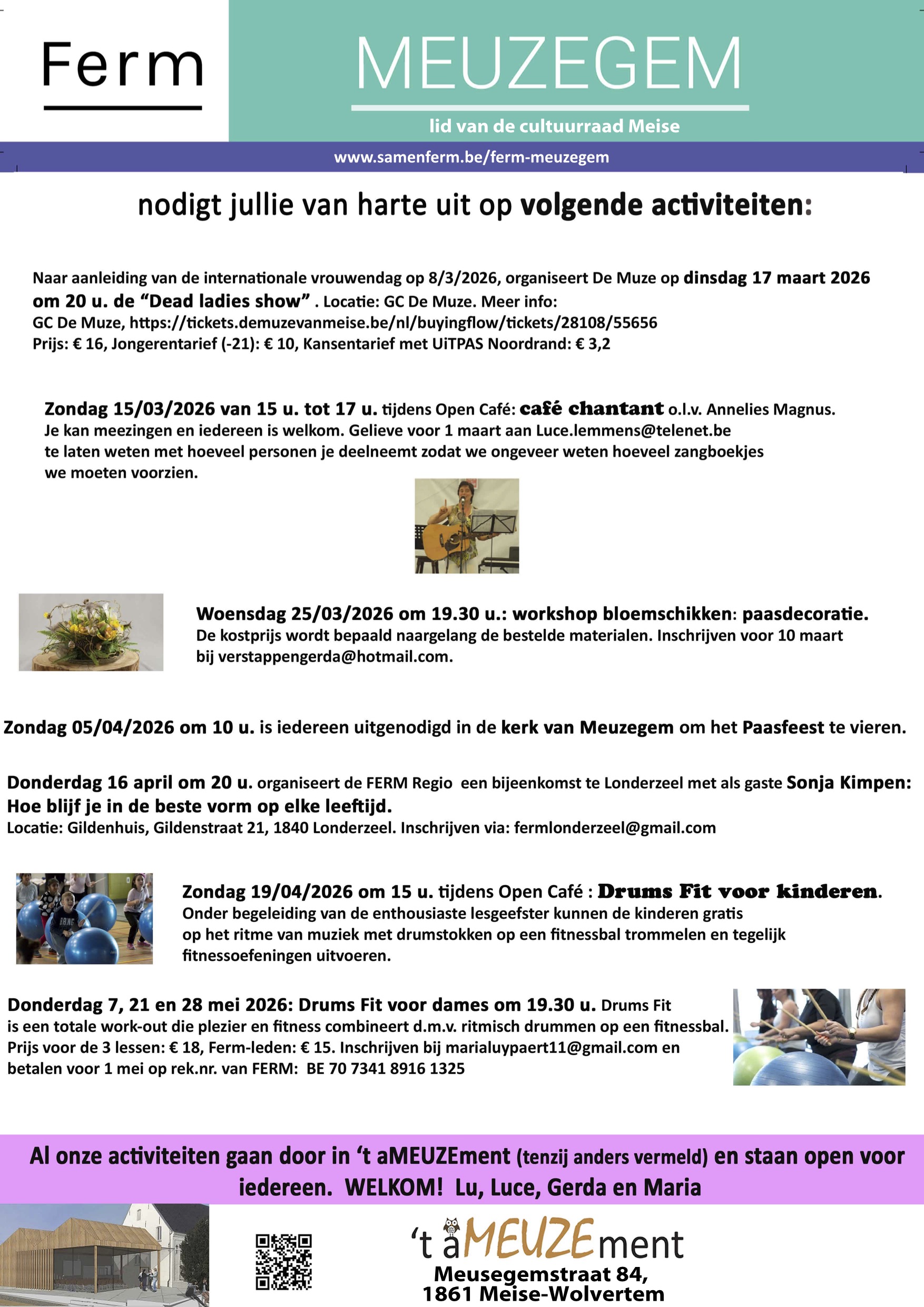 wil de lokalen maximaal ter beschikking stellen van de inwoners van Meuzegem en de bredere omgeving, zorg dragen voor de mooie oude pastorij als deel van ons gezamenlijk onroerend erfgoed, en alle initiatieven steunen die voortbouwen op de functie die dit gebouw in de geschiedenis heeft gehad als ontmoetingsplaats.